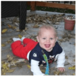 This truly has been the most amazing 6 months of my life. It is going way too fast. I realized the other night, while talking with Cory’s sister Alycia, that I am struggling a little with how fast this is going. My baby is turning into a boy before my eyes. Yes he is still a baby, but not at all what I expected. He is crawling around like crazy, climbing up stairs, getting into the cabinets and pulling himself up on bookcases, and chairs, and tables, and cabinets, and doors, and . . . . well, everything. He is eating like a champ, putting down rice cereal like it is the last bowl on earth. I know that I should be giving him real food now. Developmentally he is more than ready. The kid can hold his own bottle, and I would bet that if I let him for a few days, he would probably master a spoon. However, there is something inside me holding it up. I know it is not right, irrational even. But, I don’t want this to go so fast. I know I am being selfish. I know. But, I honestly expected to have at least another month of my little baby. Helpless, and needing me.